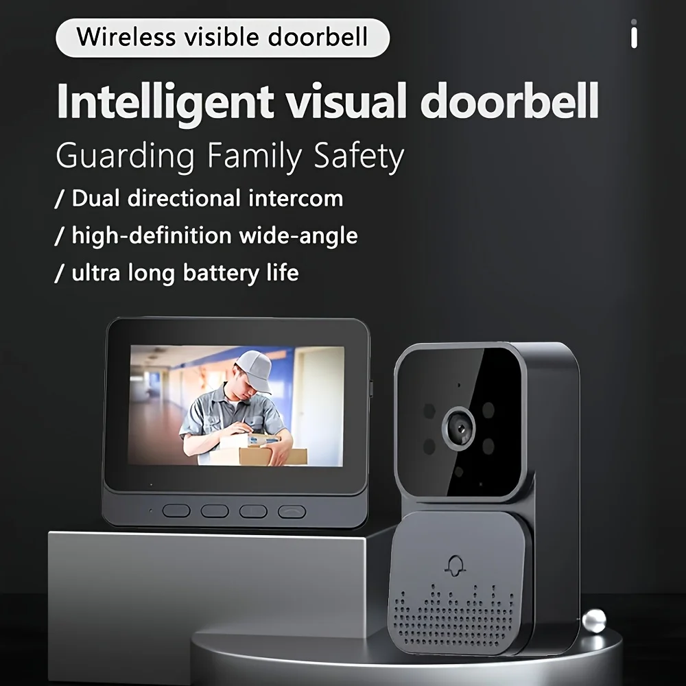 Smart Wireless Video Doorbell with 4.3-inch Screen for Real-Time Indoor Monitoring No app or internet connection required