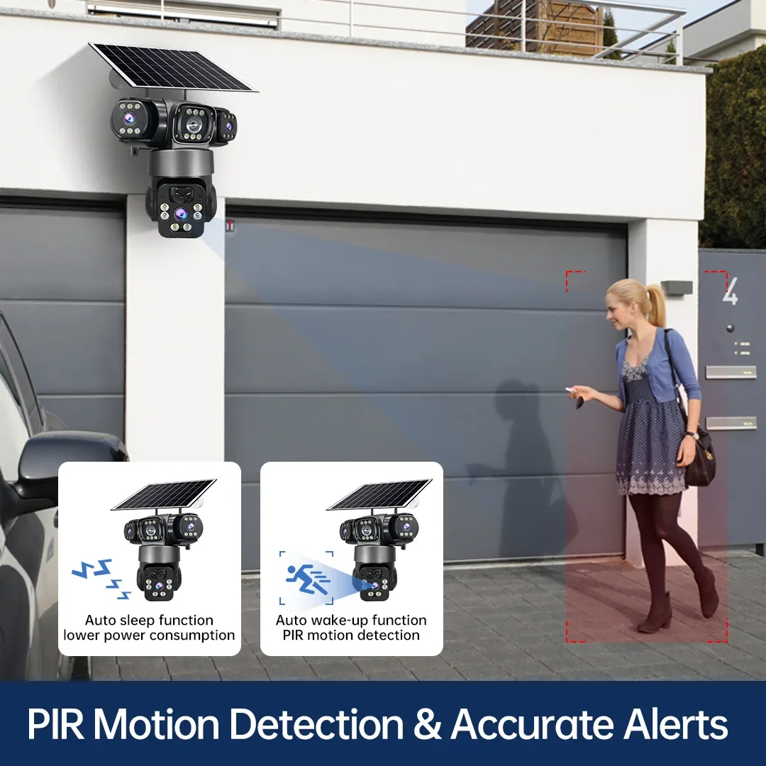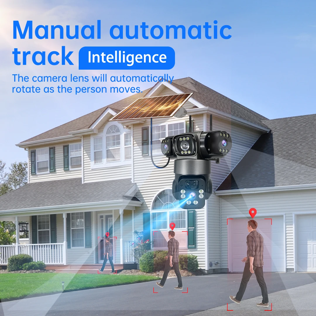 WiFi PTZ Three Camera Outdoor Wireless Solar IP Camera 15MP 20000Mah Built-in Battery Video Surveillance Cam Long Time Standby