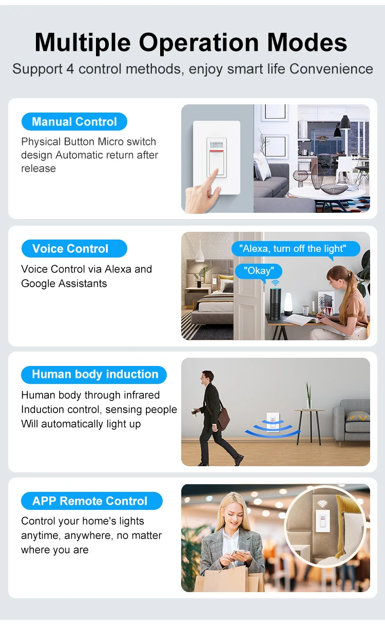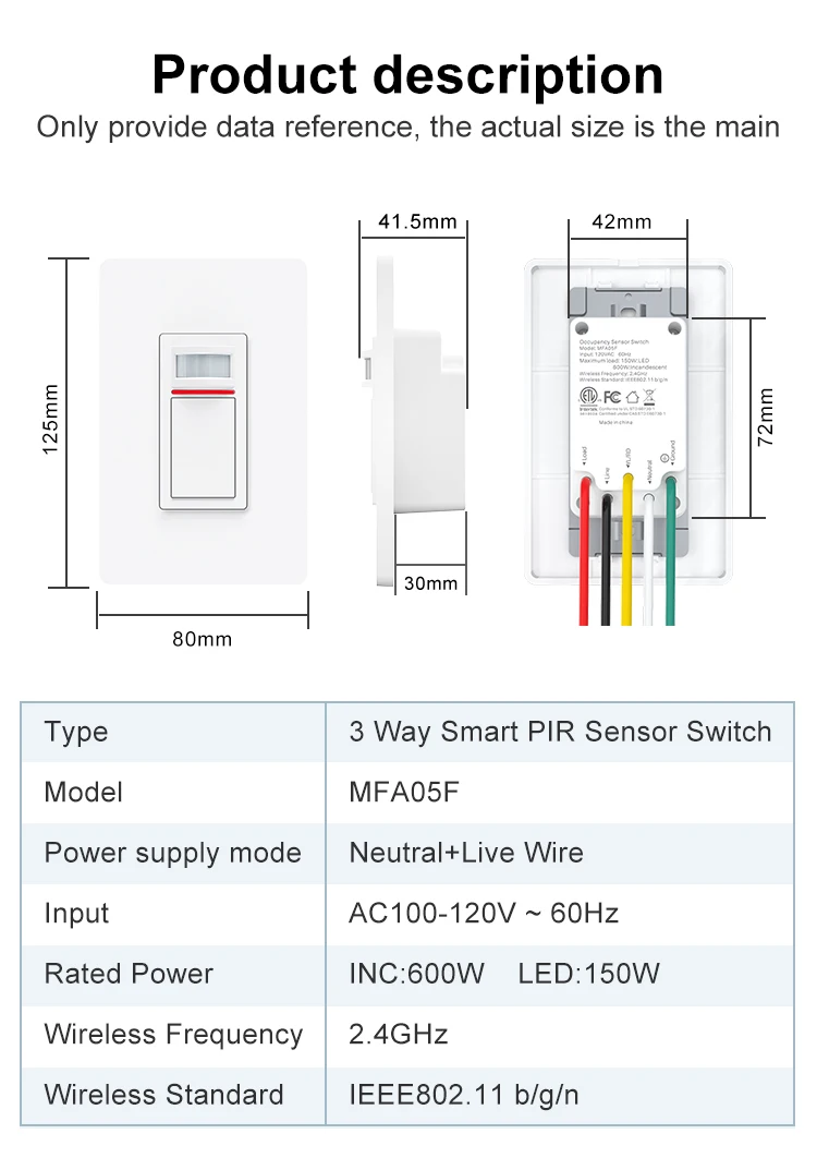 Easy Installation:Standard wall plate size and simple wiring with neutral wire requirement for a hassle-free setup.