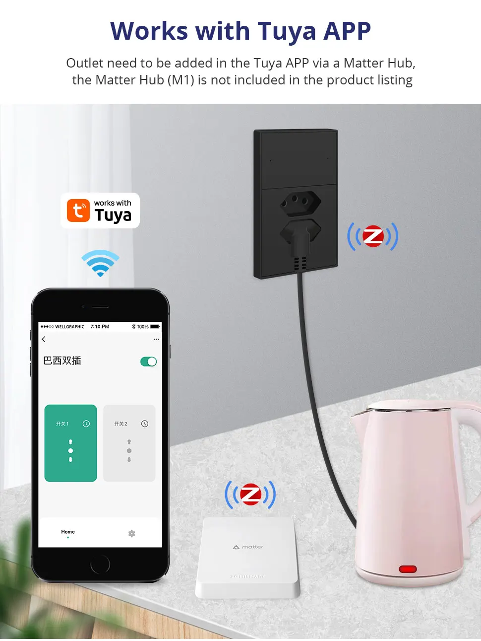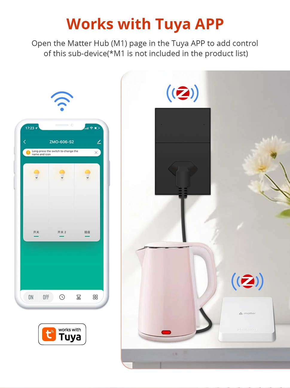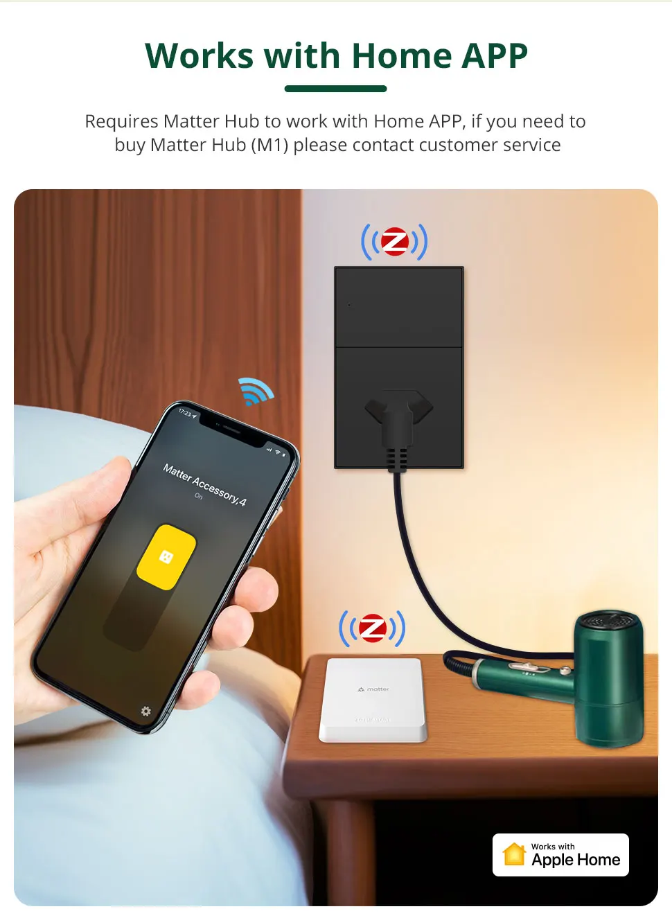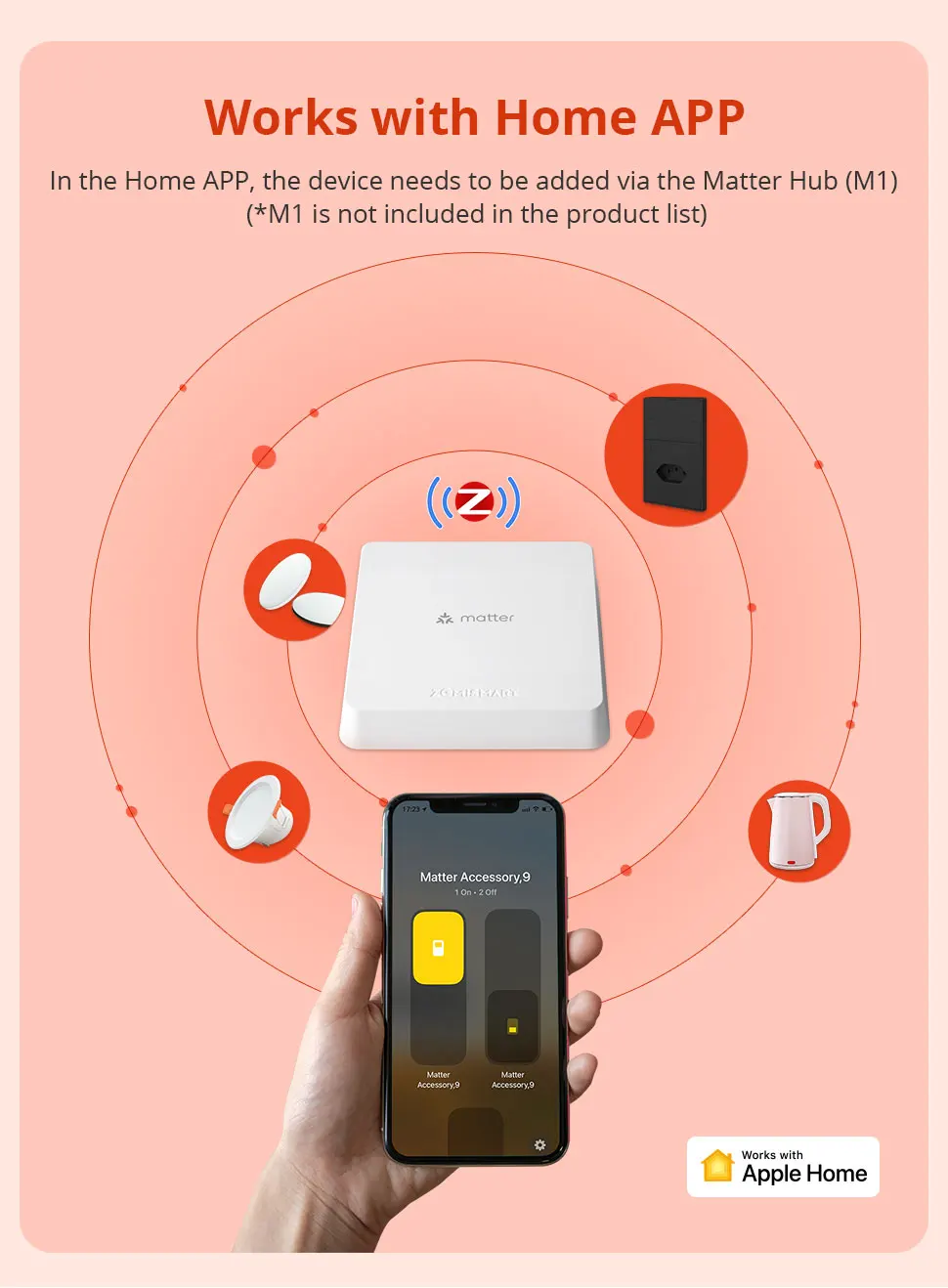 - Work with Homekit via Zemismart M1 Matter Hub.(M1 hub)