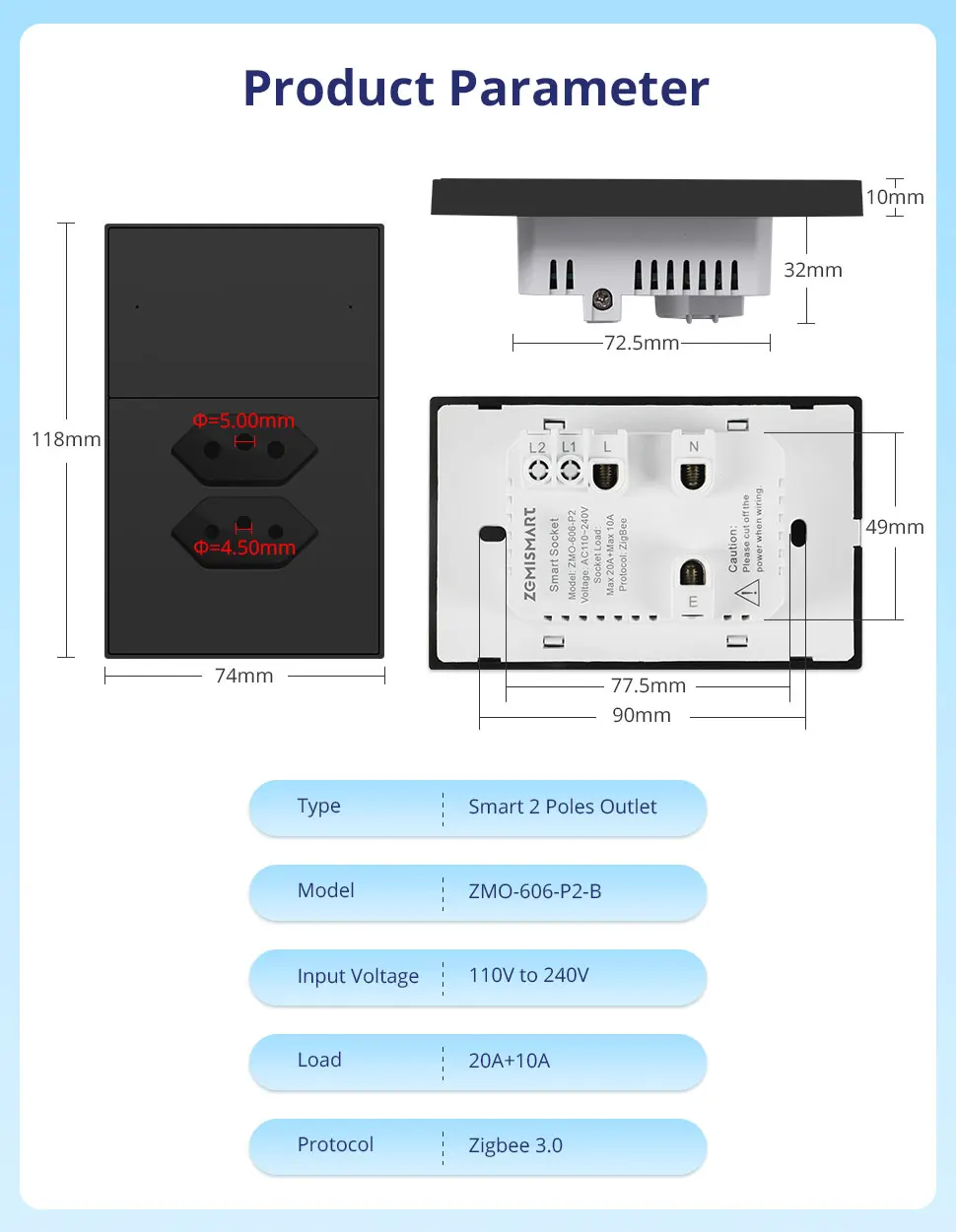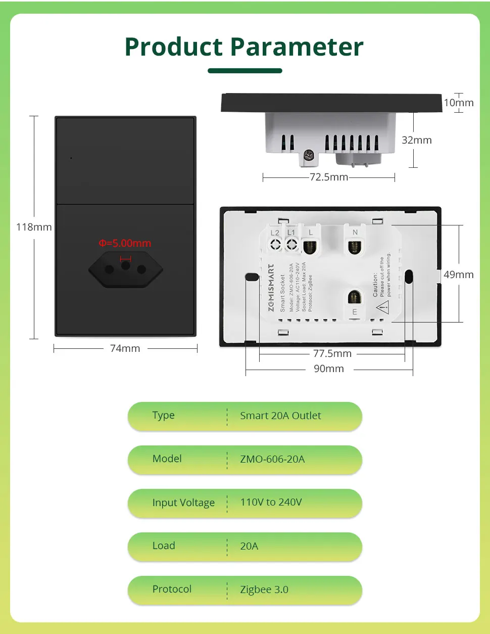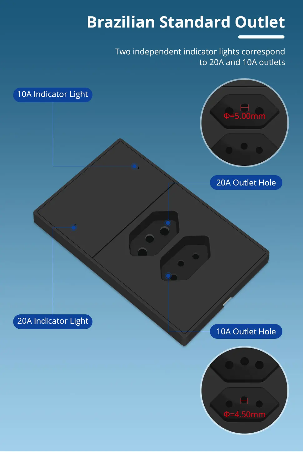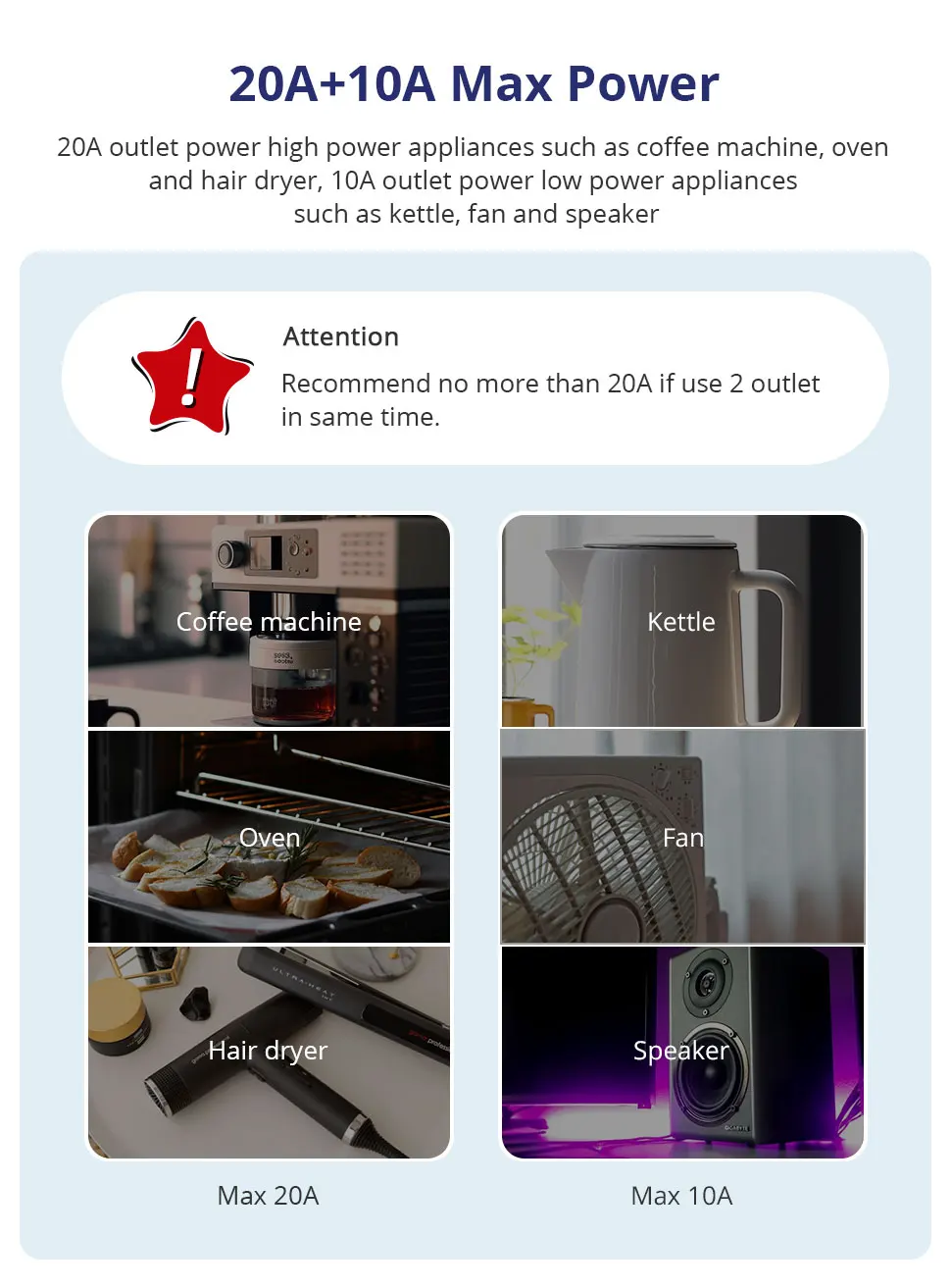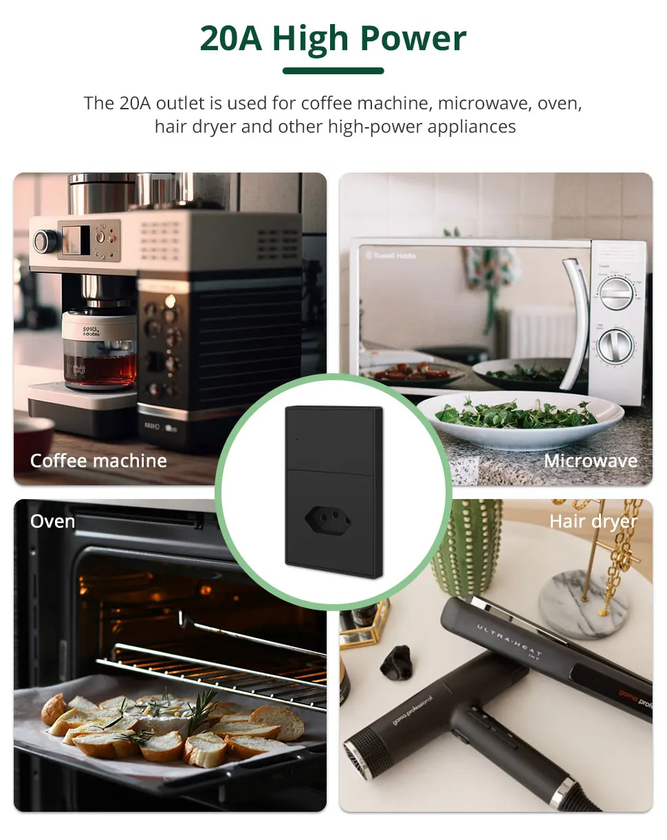 - 20A socket can be connected to coffee maker, microwave oven, oven, hair dryer and other high-power equipment.