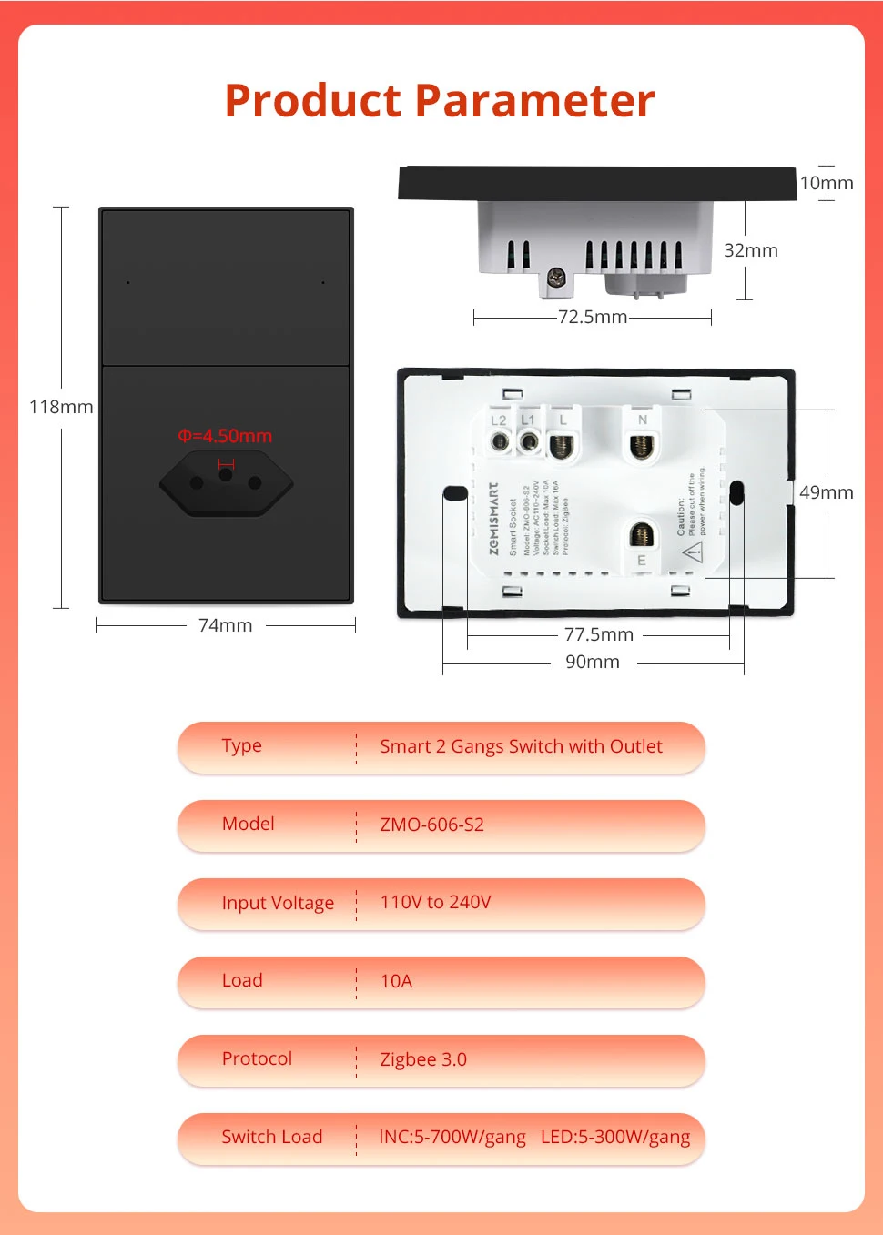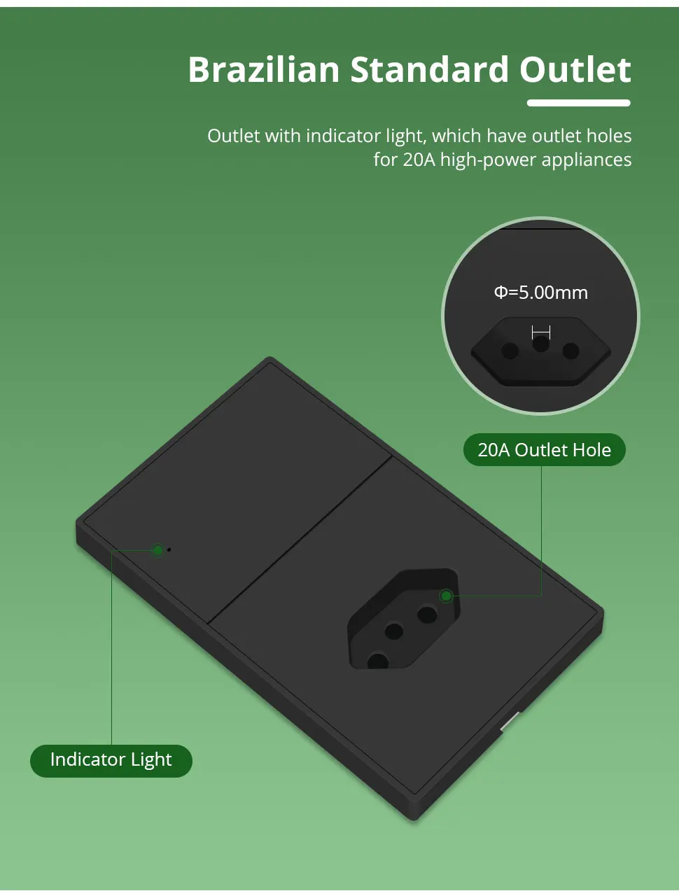 -Sleek design controllable from anywhere. Smart Brazilian wall socket is a kind of energy saving socket. Not only can use your devices but also your phone charging. Double switches with a Brazil socket is a good choice for you!
