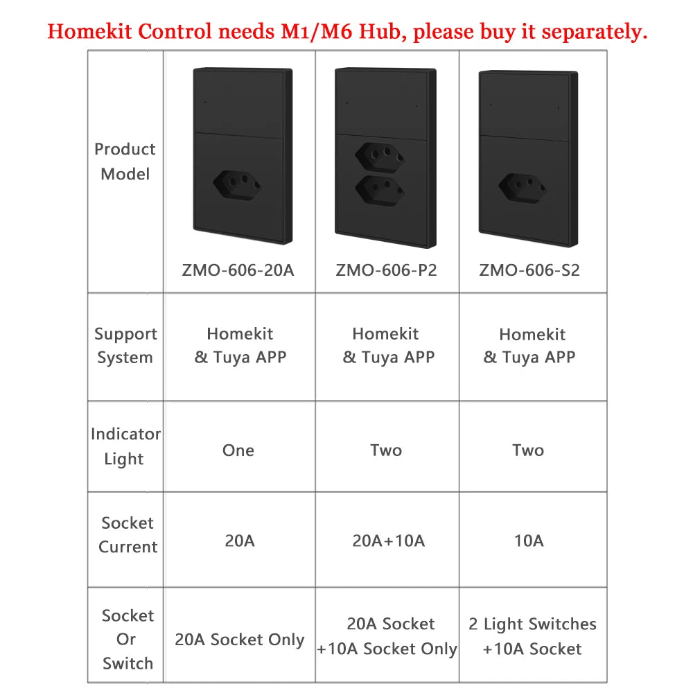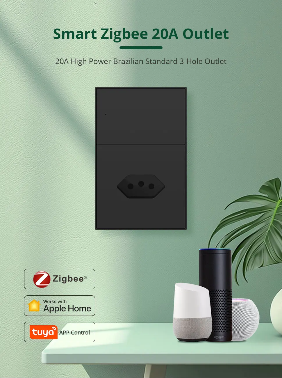 Zemismart Zigbee Brazilian Socket 10A/20A Plug with Light Switch Work with Tuya Homekit via M1/M6 Hub